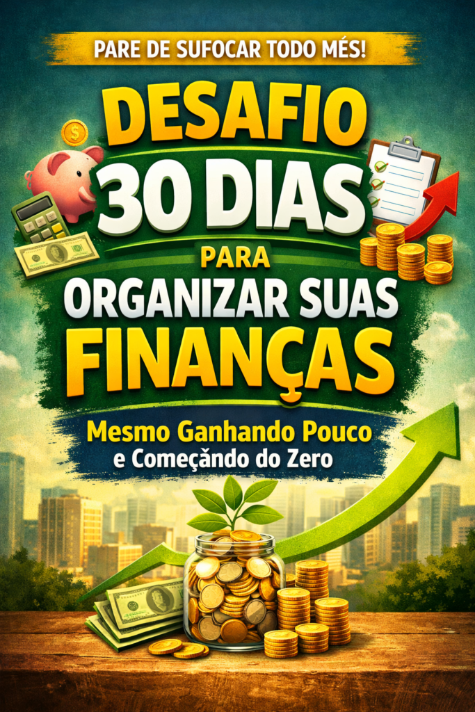 Conheça o Desafio 30 Dias para Organizar Suas Finanças. Um guia prático com planilhas prontas para você retomar o controle da sua vida financeira hoje mesmo.